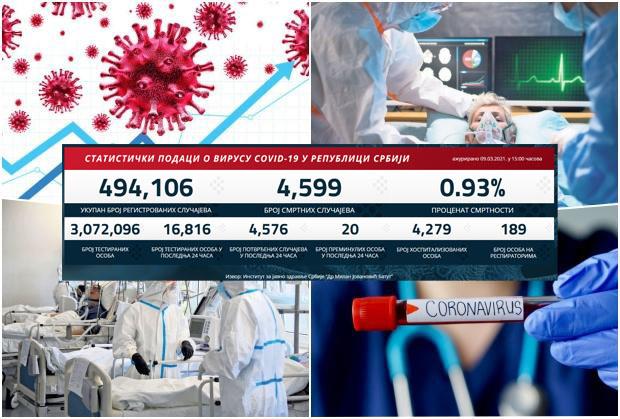 Nažalost, preminulo je 20 pacijenata. Na respiratorima u bolnicama širom Srbije trenutno se nalaze 189 pacijenata.