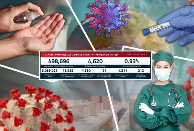 Od početka pandemije u Srbiji je testirano 3.089.025 osoba, ukupan broj registrovanih slučajeva je 498.696, a od posledica infekcije preminulo je 4.620 osoba.