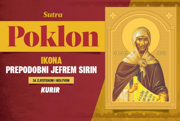 Povodom početka vaskršnjeg posta, dnevne novine Kurir svim čitaocima poklanjaju ikone sa zlatotiskom i molitvom. Sutra ćete dobiti ikonu Prepodobnog Jefrema Sirina, najznačajnijeg crkvenog oca sirijske tradicije i svetitelja koji je živeo u doba cara Konstantina u 4. veku.