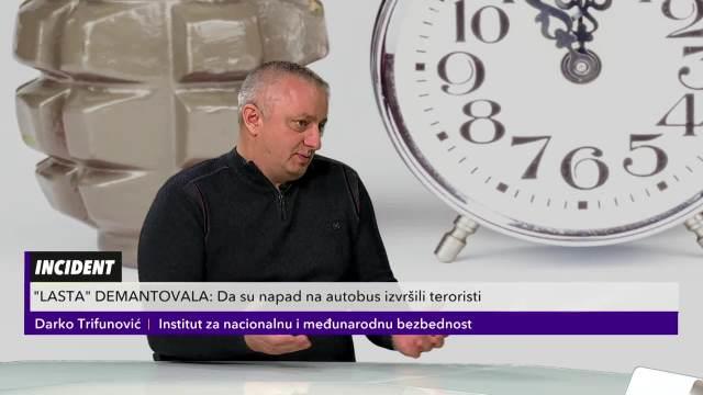 Šta je uzrok napada u "Lastinom" autobusu utvrđuju austrijska policija i tužilaštvo. Za sada je poznato da je napadač hrvatski državljanin, star 25 godina, a žrtva Povređeni vozač autobusa je prema poslednjim informacijama dobro, svi putnici su stigli u Beograd, a kada dobiju izveštaj austrijske policije, iz "Laste" će se i zvanično oglasiti o ovom incidentu. Iako su pojedini mediji preneli da je ovaj incident u stvari teroristički napad, to su u "Lasti" demantovali. Na pitanja je odgovarao Darko Trifunović iz Instituta za nacionalnu i međunarodnu bezbednost.