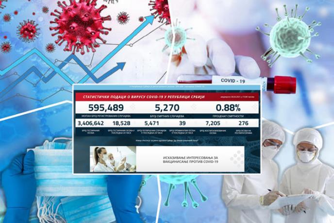 U Srbiji je u prethodnih 24 sata na korona virus testirano 18.528 građana od kojih je 5.471 novozaraženih.