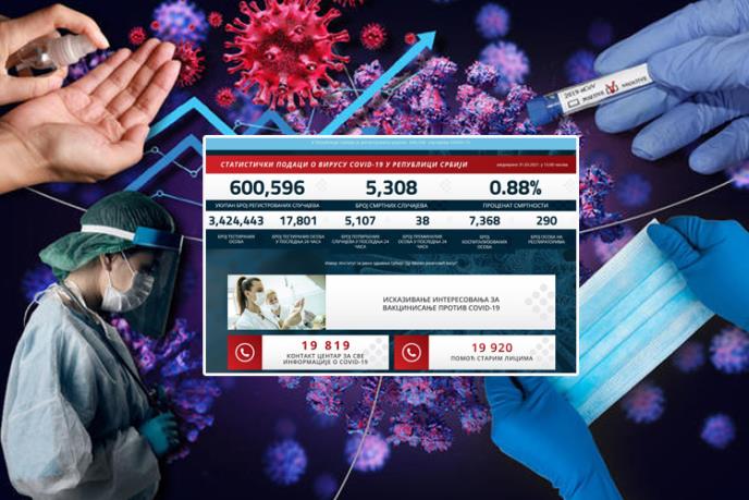 Preminulo je 38 pacijenata, a na respiratorima u bolnicama širom Srbije trenutno se nalazi 290 obolela.