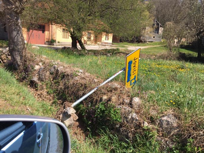Naime, oni su uzeli i precrtali ćirilični naziv sela, a zatim im to nije bilo dovoljno, pa su izvalili kompletan znak i bacili ga pored puta. Uz sve to pored precrtanog ćiriličnog imena mesta stavili su ustaški simbolu "U".