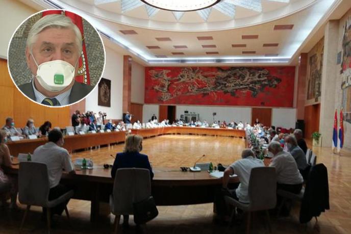 Sednici prisustvuje premijerka Srbije Ana Brnabić, ministar zdravlja Zlatibor Lončar, ministar prosvete Branko Ružić, vojvođanski sekretar za zdravstvo Zoran Gojković, članovi medicinskog dela Kriznog štaba Predrag Kon, Branislav Tiodorović, Mijomir Pelemiš i Goran Stevanović. Na sednici su i gradonačelnik Beograda Zoran Radojičić i njegov zamenik Goran Vesić.