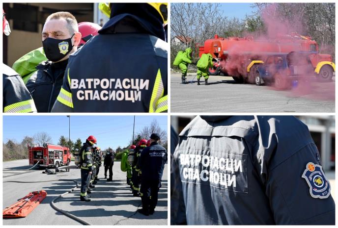 Polaznici 20. klase Kursa za radne intervencije sa opasnim materijama prikazali su znanja i veštine stečene tokom obuke u simuliranoj vežbi nekontrolisanog curenja opasnih materija u krugu fabrike. Uz upotrebu specijalne opreme, vatrogasci-spasioci sanirali su štetu nastalu nakon sudara cisterne u kojoj se nalazila opasna materija sa putničkim vozilom i prikazali veštine u skupljanju opasnih materija, kao i dekontaminacije i raspremanja opreme.