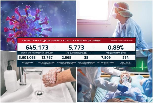 U Srbiji su u prethodna 24 sata na korona virus testirano 12.767 građana od kojih je 2.965 novozaraženih.