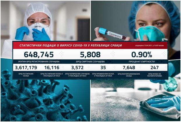 Preminuo je 35 pacijenata, a na respiratorima u bolnicama širom Srbije trenutno se nalazi 247 obolelih.
