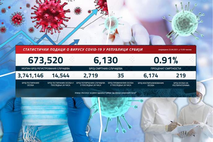 Preminulo je 35 pacijenata, a na respiratorima u bolnicama širom Srbije trenutno se nalazi 219 obolelih.