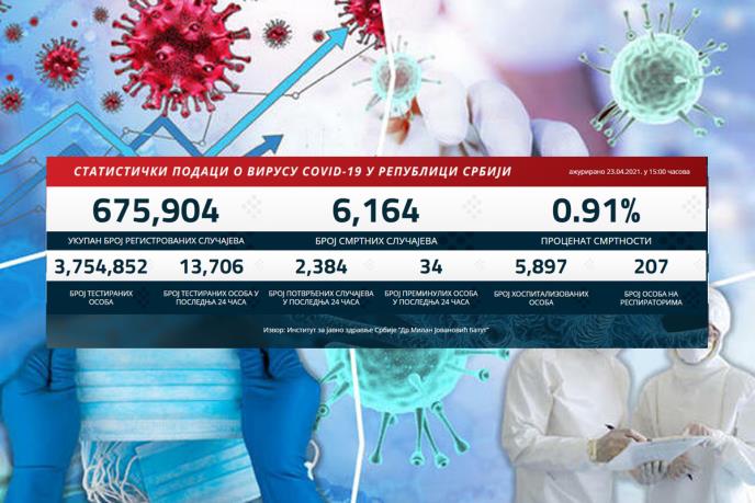 U Srbiji su u prethodna 24 sata na korona virus testirana 13.706 građana od kojih je 2.384 novozaražena