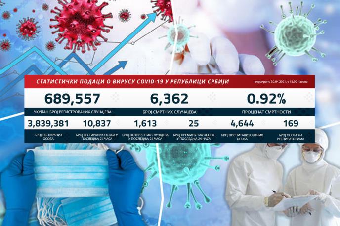 Preminulo je 25 pacijenata, a na respiratorima u bolnicama širom Srbije trenutno se nalazi 169 obolelih.
