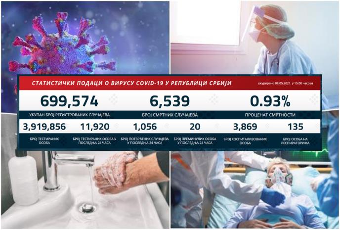 Preminulo je 20 pacijenta, a na respiratorima u bolnicama širom Srbije trenutno se nalazi 135 obolelih.