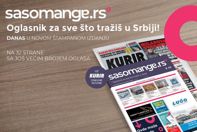 Dnevne novine Kurir danas svim čitaocima poklanjaju Sasomange.rs oglasnik na 32 strane sjajnog papira gde ćete pronaći mnogo sadržaja, kao i veliki broj najrazličitijih oglasa.