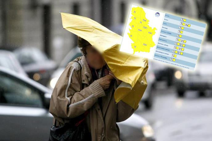 Danas je na teritoriji cele Srbije upaljen je žuti meteo alarm, zbog jakog vetra i kiše.