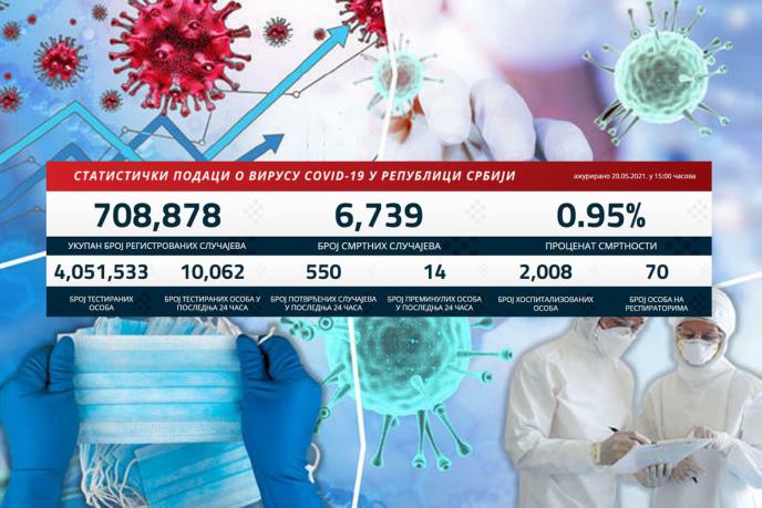 U Srbiji su u prethodna 24 sata na korona virus testirana 10.062 građana od kojih je 550 novozaraženo.
