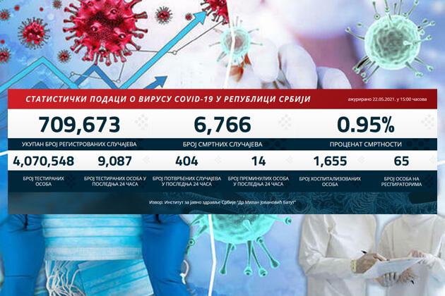 U Srbiji su u prethodna 24 sata na korona virus testirana 9.087 građana od kojih je 404 novozaražena.