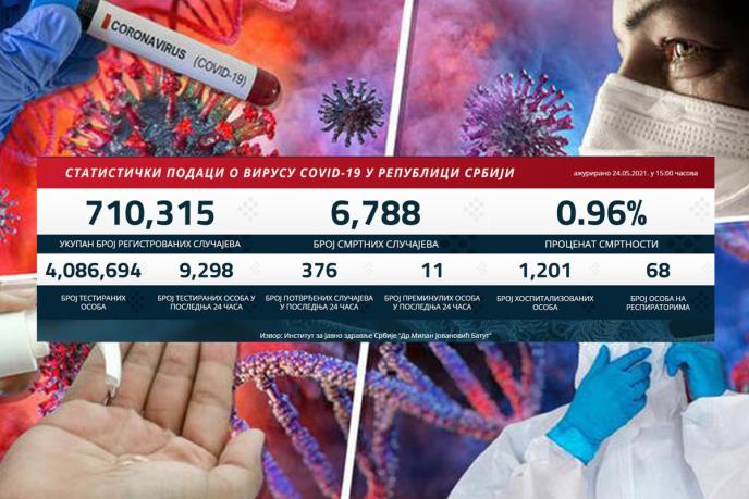 NAJNOVIJI KORONA PRESEK: Danas 376 novozaraženih, preminulo 11 pacijenata
