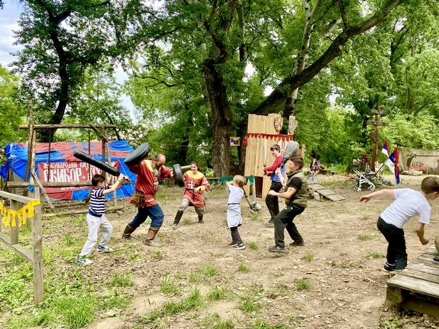 Posle ovog pogleda kroz prozor istorije, pažnja svih gostiju sa lađe ”Slavjane”, prešla je na Viteški park, gde su deca sportisti Svete Srbije učestvovala u jednom pravom dečijem viteškom turniru u kom su osvajali tvrđavu, vežbali borbe sa topuzima krpenjačama, savitljivim mačevima, verali se po penjalicama, podražavajući kretnje, strategije i veštine pravih vitezova.