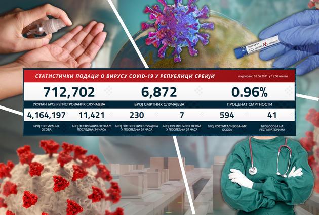 U Srbiji je u prethodna 24 sata na korona virus testirano 11.421 građana od kojih je 230 novozaraženih.