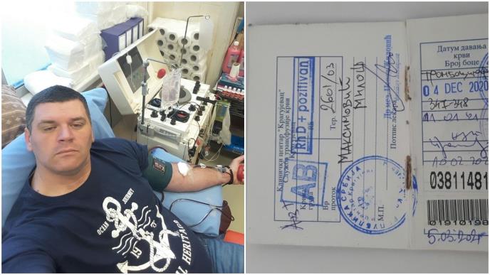 - Trombocite dajem uglavnom za pacijente sa leukemijom i druge takve pacijente. Znam da njima kesa krvi znači život. Davanje trombocita traje oko sat i po vremena, pa smo skoro računali da sam na toj mašini proveo ukupno četiri sata - kaže Makismović za Kurir dodajući da stalno pokušava da animira ljude oko sebe da doniraju krv.