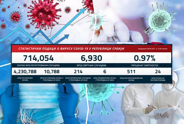 U Srbiji je u prethodna 24 sata na korona virus testirano 10.788 građana od kojih je 214 novozaraženih.
