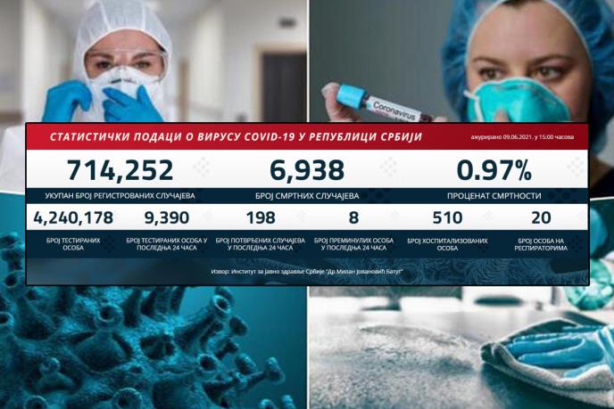 U Srbiji je u prethodna 24 sata na korona virus testirano 9.390 građana od kojih je 198 novozaraženih.