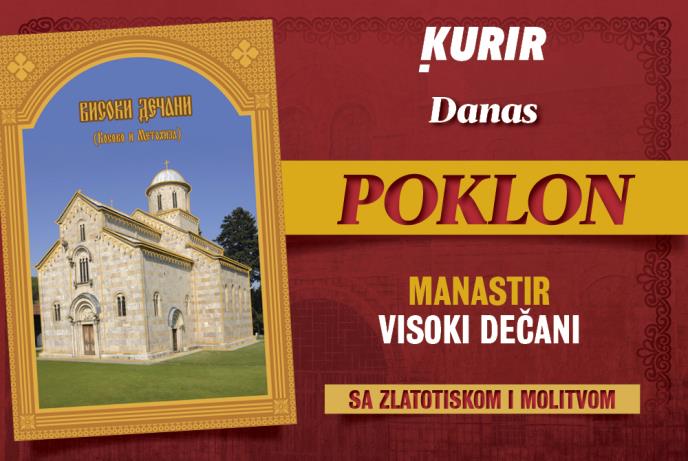 Dnevne novine Kurir će svojim čitaocima tokom juna svakog petka poklanjati ikone u zlatotisku sa fotografijama najlepših pravoslavnih hramova na Kosovu i Metohiji. Danas ćete dobiti ikonu s fotografijom manastira Visoki Dečani.
