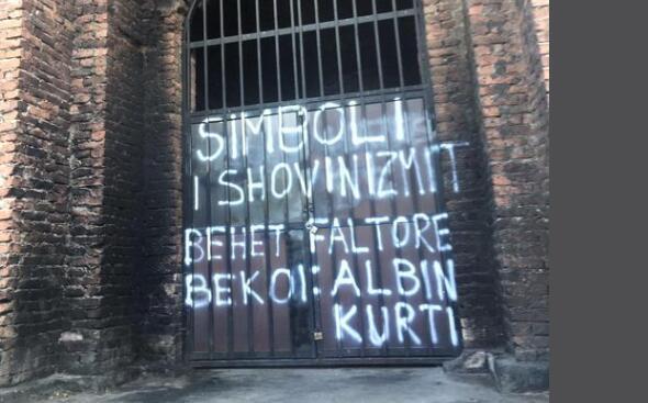 Na vratima Hrama Hrista Spasa u Prištini osvanuo je novi grafit – "simbol šovinizma postaje svetinja blagoslovom Aljbina Kurtija".