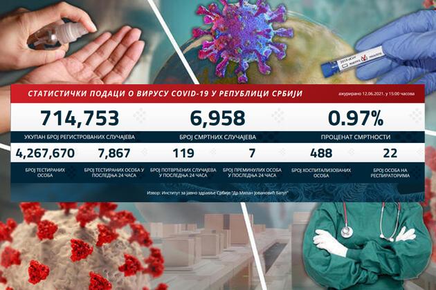 U Srbiji je u prethodna 24 sata na korona virus testirano 7.867 građana od kojih je 119 novozaraženo.