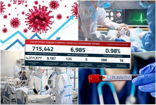 U Srbiji je u prethodna 24 sata na korona virus testirano 9.187 građana od kojih je 135 pozitivno.