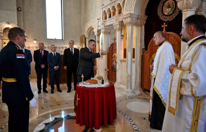 Ministar unutrašnjih poslova Republike Srbije Aleksandar Vulin prisustvovao je ranije danas obeležavanju slave ministarstva unutrašnjih poslova Svete Trojice i sečenju slavskog kolača u crkvi Svetog Simeona Mirotočivog na Novom Beogradu.