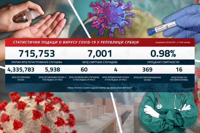U Srbiji je u prethodna 24 sata na korona virus testirano 5.938 građana od kojih je 60 novozaraženih.