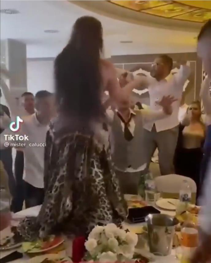 Na snimku koji je podelila na Instagramu jasno se vidi kako zanosno đuska uz pesmu "Hej, Šeki, Šeki" sve dok jedan od maturanta nije pokušao da se popne, nakon čega je sto "popustio", a sva hrana, čaše i tanjiri se sručili na pod.
