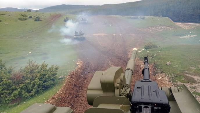 Pripadnici bataljona Kopnene vojske opremljenog novouvedenim tenkovima T-72MS realizuju taktička uvežbavanja i vežbe sa bojevim gađanjem na poligonima „Pešter“ i „Pasuljanske livade“, u okviru združene vežbe „Munjeviti udar 2021“.