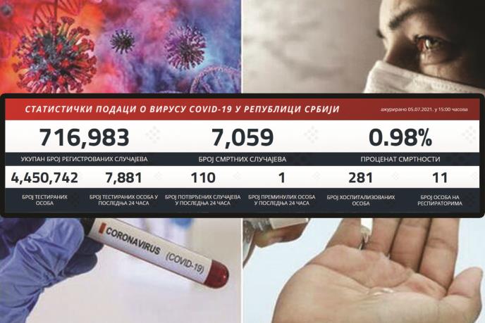 U prethodna 24 sata u Srbiji je na korona virus testirano 7.881 građana od kojih su 110 novozaraženih.