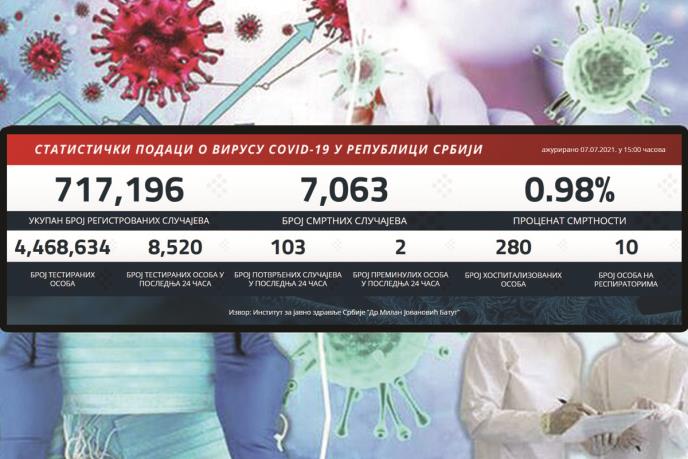 U prethodna 24 sata u Srbiji je na korona virus testirano 8.520 građana od kojih su 103 novozaražena.
