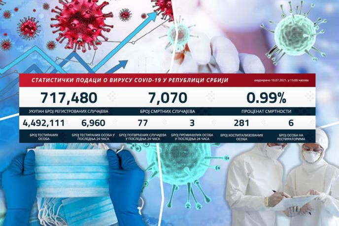 U prethodna 24 sata u Srbiji je na korona virus testirano 6.960 građana od kojih je 77 novozaraženo.