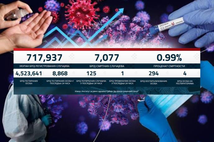 U prethodna 24 sata u Srbiji je na korona virus testirano 8.868 građana od kojih je 125 novozaraženih.