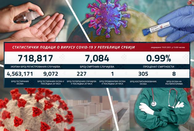 U prethodna 24 sata u Srbiji je na korona virus testirano 9.072 građana od kojih je 227 novozaraženih.