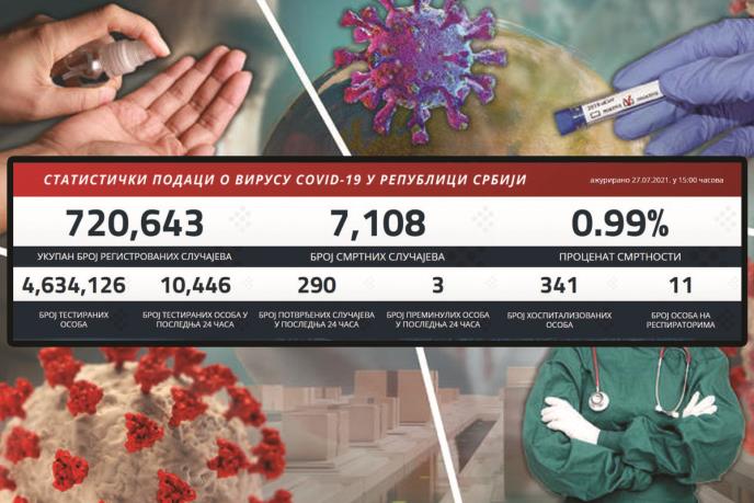 U prethodna 24 sata u Srbiji je na korona virus testirano 10.446 građana, a 290 je novozaraženih.