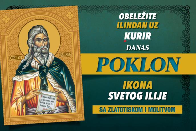 Danas pravoslavni vernici obeležavaju Ilindan, dan posvećen Svetom Iliji. Tim povodom, svi čitaoci Kurira, dobiće na poklon ikonu Svetog Ilije sa zlatotiskom i molitvom. Na ikonama se Sveti Ilija predstavlja ili kako na vatrenim kolima ide na nebo, ili kako drži nož u ruci kao znak da je njime poklano 450 lažnih Valovih zreca na brdu Kamil ili kako sedi u pećini gde se sklonio od oholog cara Ahava, a gavran mu donosi hranu.