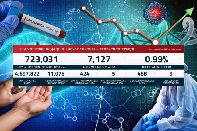 U prethodna 24 sata u Srbiji je na korona virus testirano 11.076 građana, a 424 je novozaražena.