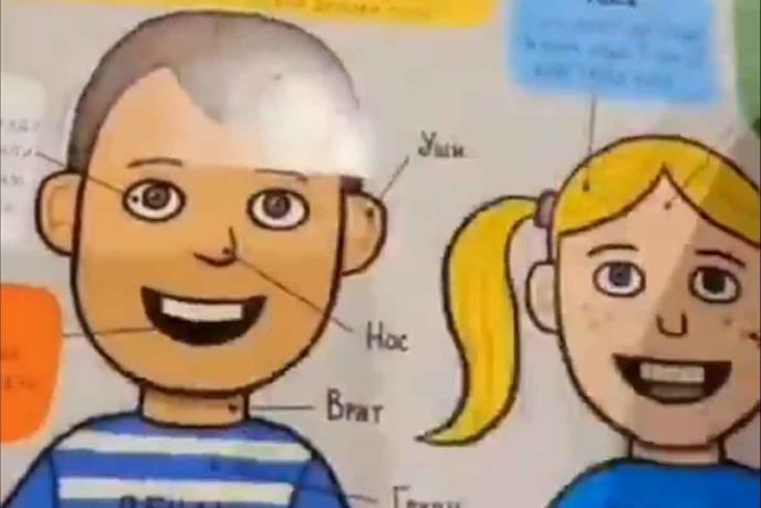 Na društvenoj mreži Tviter pojavio se snimak knjige za decu i stranica na kojoj su obeleženi određeni delovi glave i lica kod ljudi.
