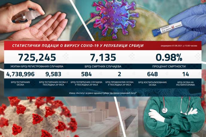 U prethodna 24 sata u Srbiji je na korona virus testirano 9.583 građana, a 584 njih je novozaraženih.