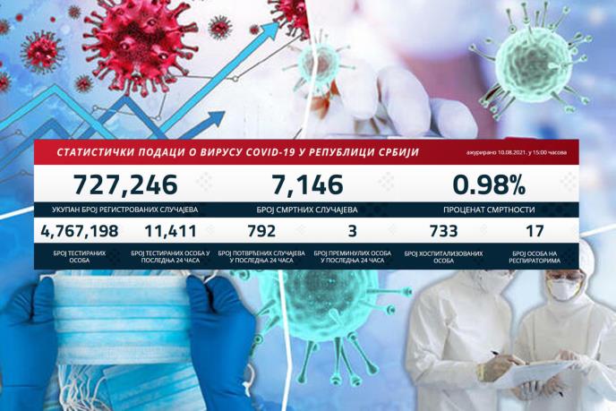 U prethodna 24 sata u Srbiji je na korona virus testirano 11.411 građana, a 792 je novozaraženo.