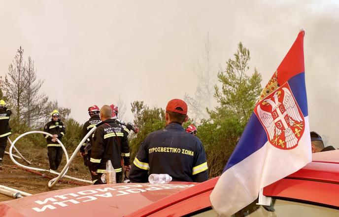 Srpski vatrogasci-spasioci zajedno sa kolegama iz Grčke ulažu nadljudske napore kako bi sprečili širenje požara. Vatrogasci-spasioci i pripadnici Helikopterske jedinice, nakon angažovanja u gašenju požara u Srbiji i Severnoj Makedoniji, po naređenju predsednika Republike Srbije Aleksandra Vučića došli su na Eviju kako bi bratskom grčkom narodu pomogli da se izbori sa vatrenom stihijom. Ministar unutrašnjih poslova Srbije Aleksandar Vulin koji boravi u zvaničnoj poseti Republici Grčkoj preneo je rukovodstvu te zemlje najsrdačnije i najiskrenije pozdrave predsednika Republike Srbije Aleksandra Vučića i izraze iskrene solidarnosti.