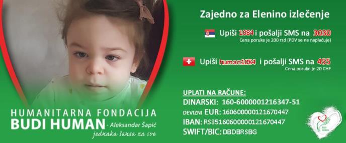 Najbolji put za lečenja Elene je da što pre počne sa enzimskom supstitucionom terapijom lekom Lamzede, koji je za sada jedini registrovani lek za navedenu bolest i koji bi uskoro trebalo da bude dostupan i u Srbiji. Enzimska terapija treba da telo što više očisti od nakupljenih oligosaharida kako bi se nakon toga što je pre moguće uradila transplantacija koštane srži, jer je to jedino rešenje za tu bolest. Ukoliko bi transplantacija bila uspešna, telo bi samo počelo da proizvodi enzim koji Eleni nedostaje i bio bi joj omogućen normalan život. Sredstva su joj potrebna za transplantaciju koštane srži, za rehabilitaciju, lekove i tretmane koji iziskuju dosta novca koji njeni roditelji ne mogu sami da obezbede, te ovim putem, i uz pomoć humanitarne fondacije Budi human, pozivaju sve ljude da pomognu koliko su u mogućnosti, kako bi njihova devojčica rasla zdrava i srećna.