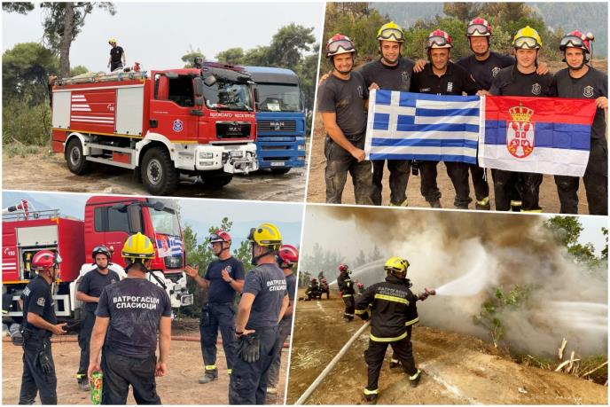 Pripadnici Sektora za vanredne situacije iz Niša, Beograda, Novog Sada, Sremske Mitrovice, Zrenjanina, Kikinde, Jagodine, Kruševca i Kraljeva već treći dan angažovani su danonoćno na gašenju požara na severnom delu ostrva Evija, zajedno sa pripadnicima Helikopterske jedinice koji su samo tokom jučerašnjeg dana u dva navrata u 44 naleta izbacili 48 tona vode u rejonima mesta Elinika i Atalanti.