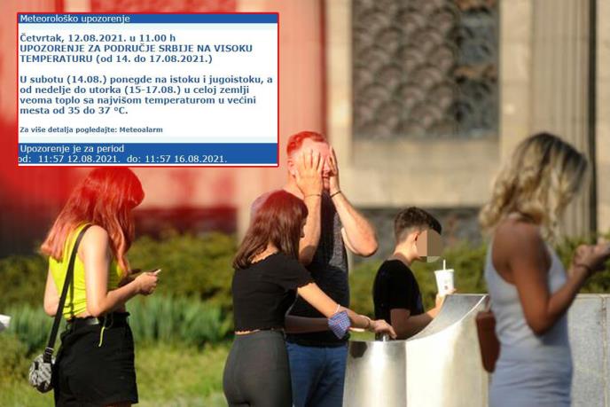 U subotu ponegde na istoku i jugoistoku, a od nedelјe do utorka (15-17.08.) u celoj zemlјi biće veoma toplo sa najvišom temperaturom u većini mesta od 35 do 37, upozorio je danas Republički hidrometeorološki zavod.