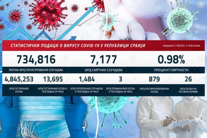 U prethodna 24 sata u Srbiji je na korona virus testirano 13.695 građana, a njih 1.484 je novozaraženo.
