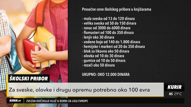 Kompleti udžbenika za osnovce kreću se između 12 i 18.000 dinara, dok je sve to za srednjoškolce još skuplje. Uz to idu i troškovi za školski pribor pa se tako male sveske ogu naći po ceni od 13 do 120 dinara, velike od 50 do 150, a ranci koštaju izmešu 3.000 i 6.000 dinara.